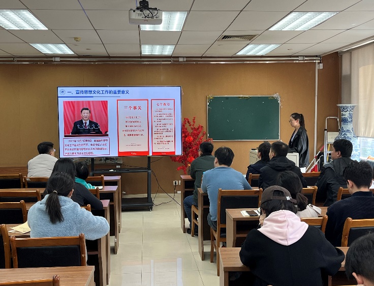 2023级博士党支部副书记张晶进行了学习日领学,以“两会”精神为着力点,介绍了政府工作报告要点。他聚焦“新质生产力”,指出要以科技创新推动产业创新,以新质生产力赋能高质量发展。同时,围绕习近平总书记关于网络强国的重要思想,强调共产党员要严格按照《中国共产党党员网络行为规定》规范上网,共筑网络安全防线。