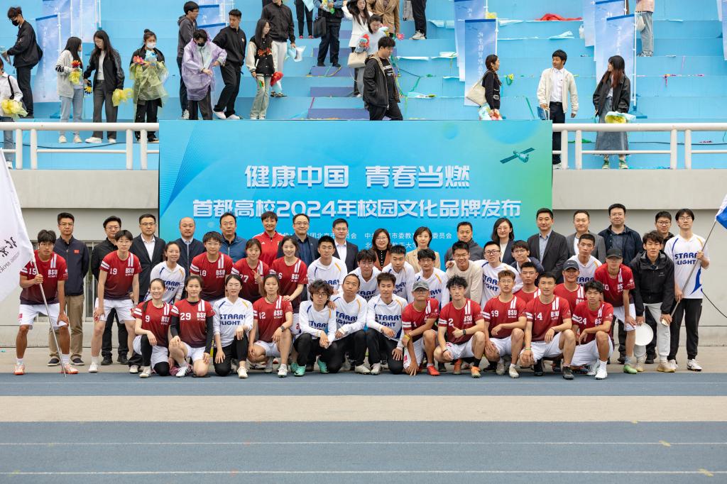 4月28日,“健康中国·青春当燃”首都高校2024年校园文化品牌发布仪式在我校体育场举办。发布仪式上,北京团市委、北京市委教育工委等单位负责同志共同发布“健康中国·青春当燃”首都高校2024年校园文化品牌,来自58所在京高校的800名师生一同见证这一历史时刻。