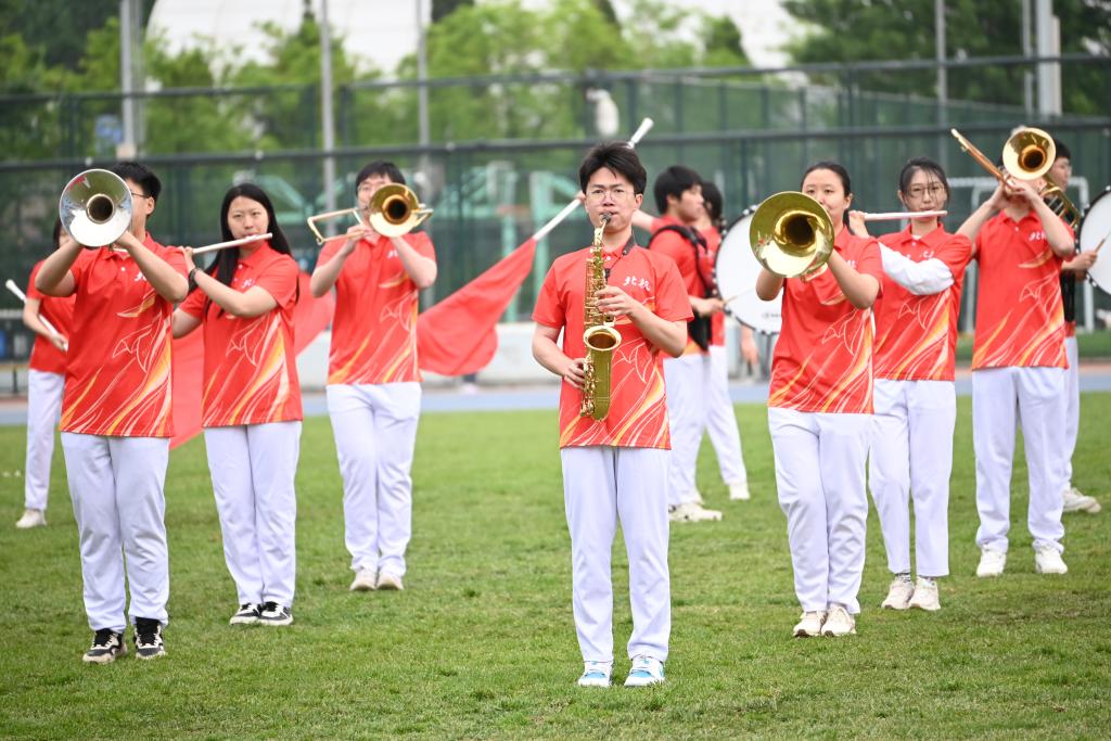 暖场环节,北航篮球、跆拳道、轮滑、武术等多个社团现场展示校园文化建设成果,充分展示了青年学子积极昂扬的精神风貌。北航武术队带来表演《少年侠气》,将太极、长拳、刀剑、旗阵和彩带龙等元素有机融合,传递中华武术精髓,发扬体育精神;行进管乐团激情演奏《我的祖国》,乐声嘹亮,步伐铿锵。