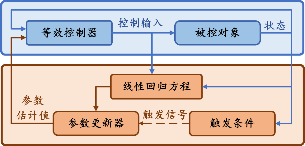 论文针对含有未知控制系数的非线性系统,构造了线性回归方程以收集系统历史数据中蕴含的激励信息,建立了参数更新的触发条件以确保等效控制器的性能,围绕参数估计的值域与激励信息的丰富程度,分别从参数更新器和等效控制器角度提出了两种改进技术,在保留现有技术优势的同时有效避免了控制输入奇异性问题。