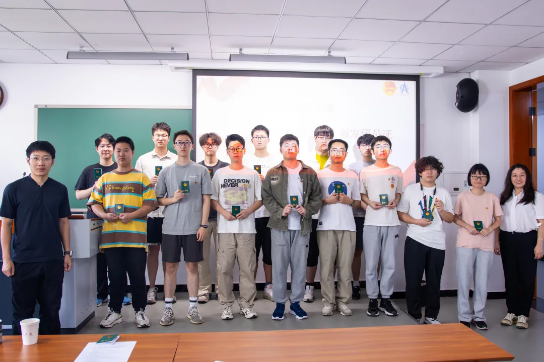 乔娇为新团员佩戴团徽,吕子良颁发团员证。这两枚象征身份的信物,标志着新团员正式开启在团组织引领下“以行动践行誓言”的人生新篇。乔娇在致辞中提出三点期望:一要“擎信仰之炬”,在思想行动中争做表率;二需“砺学识之剑”,于科研课堂中深耕不辍;三应“践奉献之行”,通过自动化特色志愿项目服务社会。